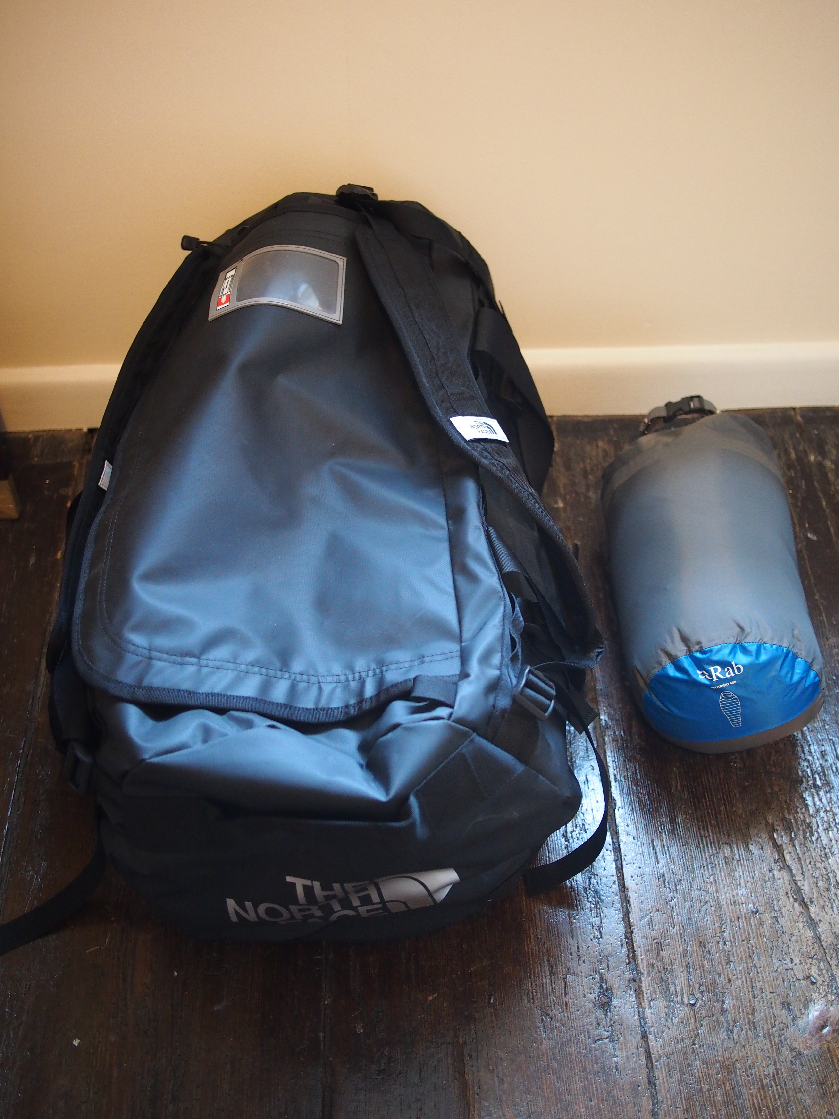 It felt great to the touch, a bit like silk, and although it packs down very small it lofted up well and feels cosy and warm in a way that only down can. I’ve yet to test the long term ruggedness of the bag, but for use in the UK and for sofa surfing it is extremely comfortable, with the angled foot box especially helping one find a good sleeping position. It is easy to stuff away in the waterproof stuff sack and once in there would happily disappear inside a rucksack or bag (shown next to the excellent North Face 70 litre duffel for comparison). I will of course report back with any updates, and most importantly with how it fares during 6 months on the road in Africa.