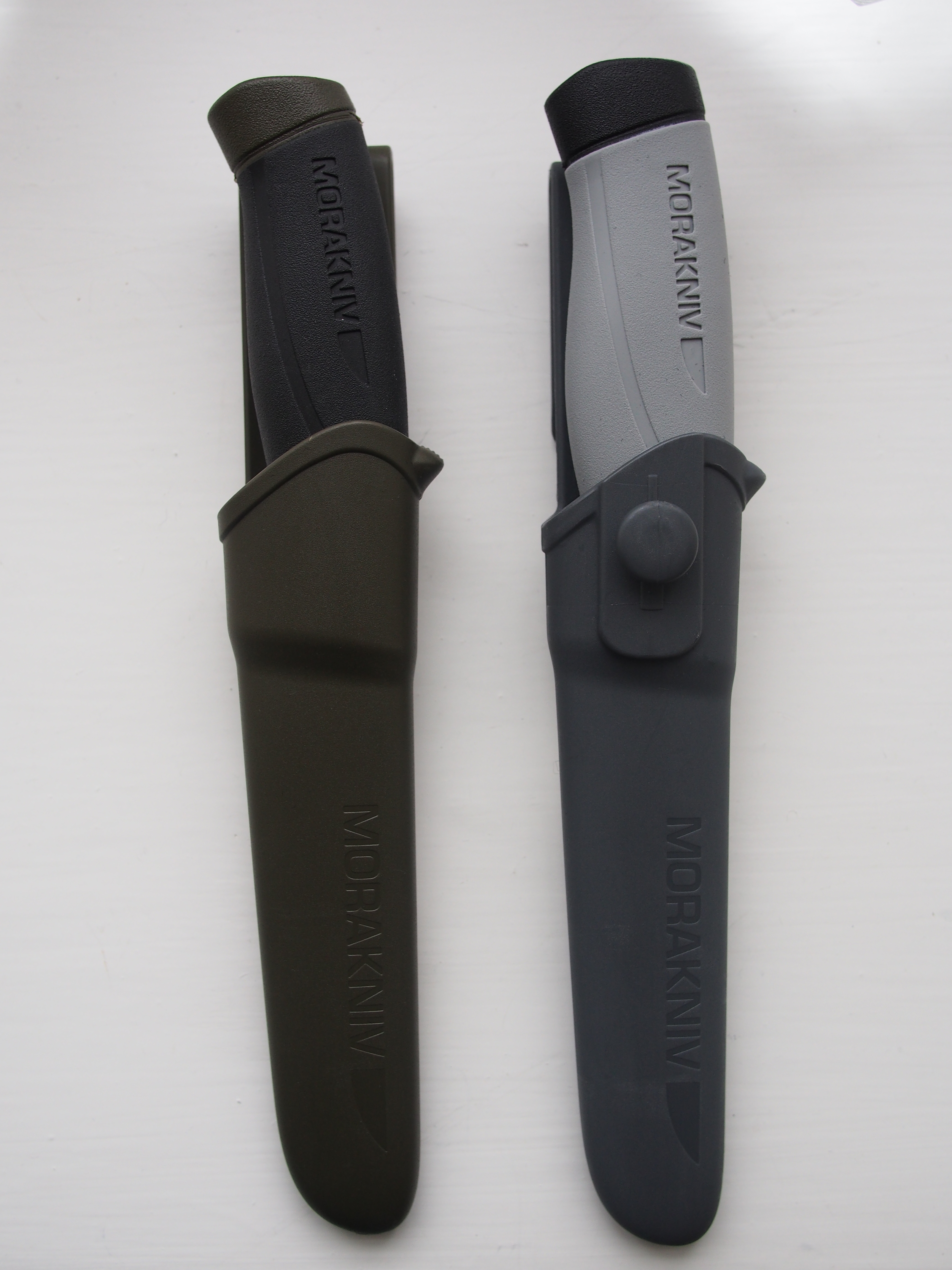 Having perused the internet in my obsessive style I chose two knives from Mora: The Companion MG and the HighQ Robust. Both made of carbon steel (to resist rusting etc) with rubber handles. The Companion weighing in at 110g with a blade thickness of 2mm and the HighQ Robust weighing in at 138g with a blade thickness of 3.2mm. Both have 10.4cm blades. Why two, well it made sense to have a thinner blade for the finer jobs like food preparation, and another for the tougher jobs like wood batoning. Its also worth mentioning that combined with a fire steel both knives can be used to light fires, which although not a primary concern is a useful extra.